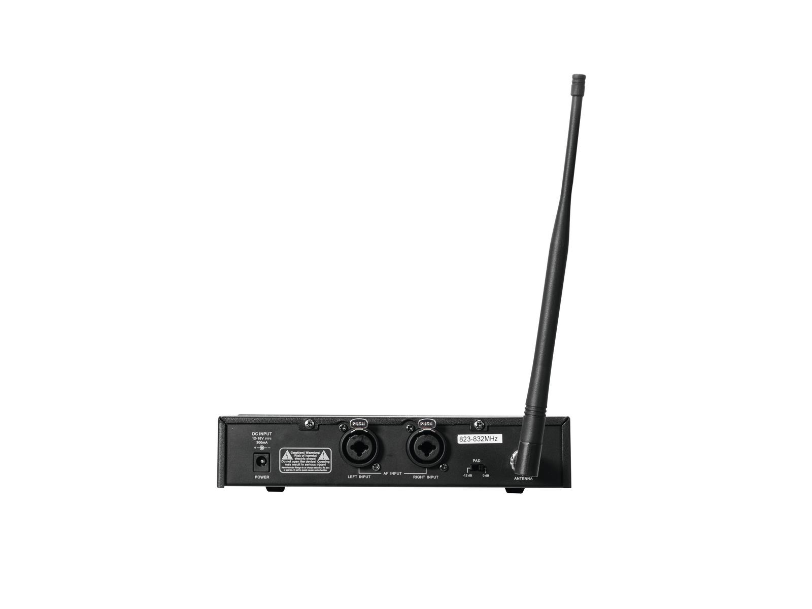 - Set enthält stationären Stereo-UHF-Sender, Stereo-UHF-Taschenempfänger und Mini-Ohrhörer