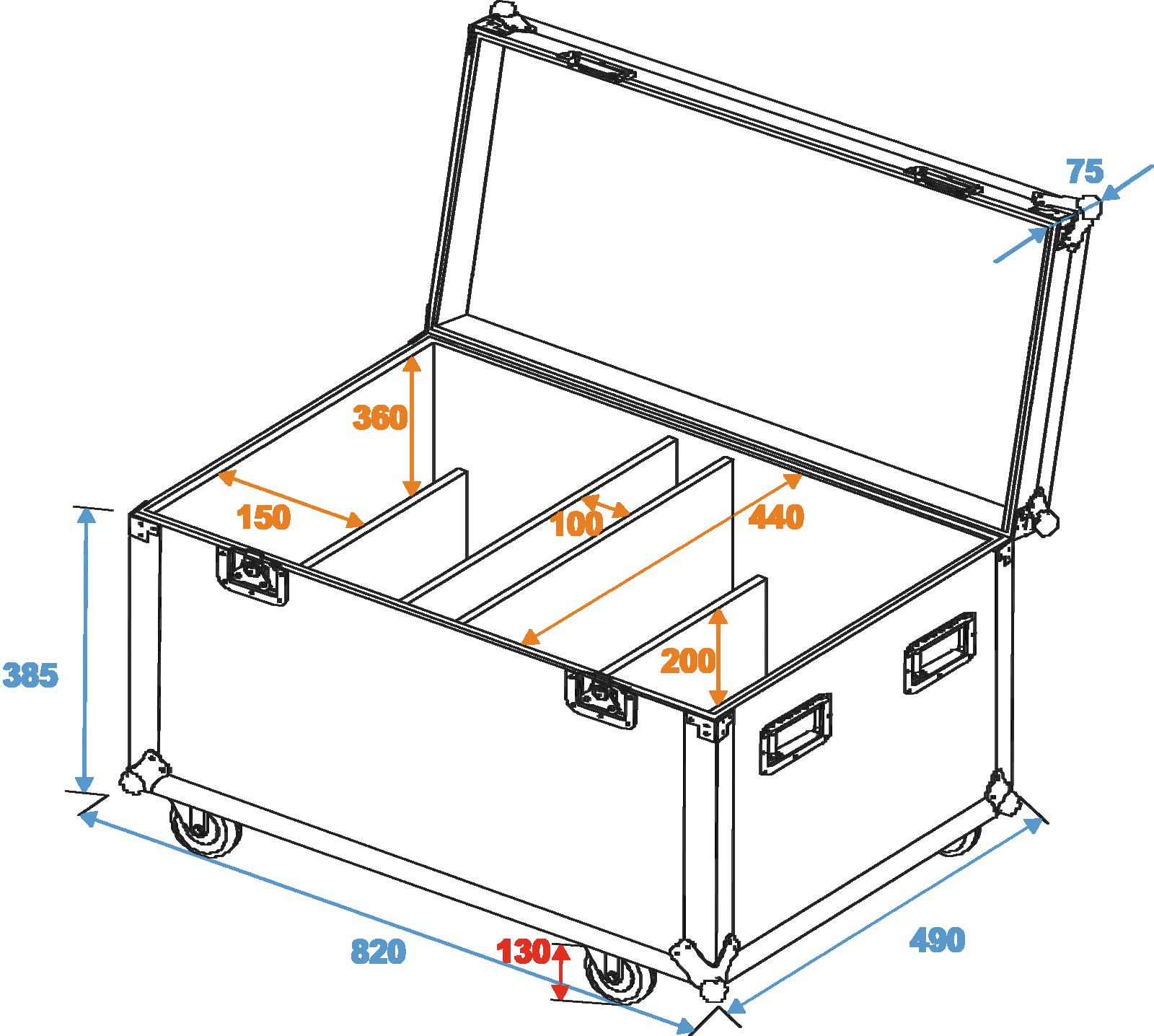 - Innenraum aufgeteilt für 4 x Audience Blinder und Zubehör