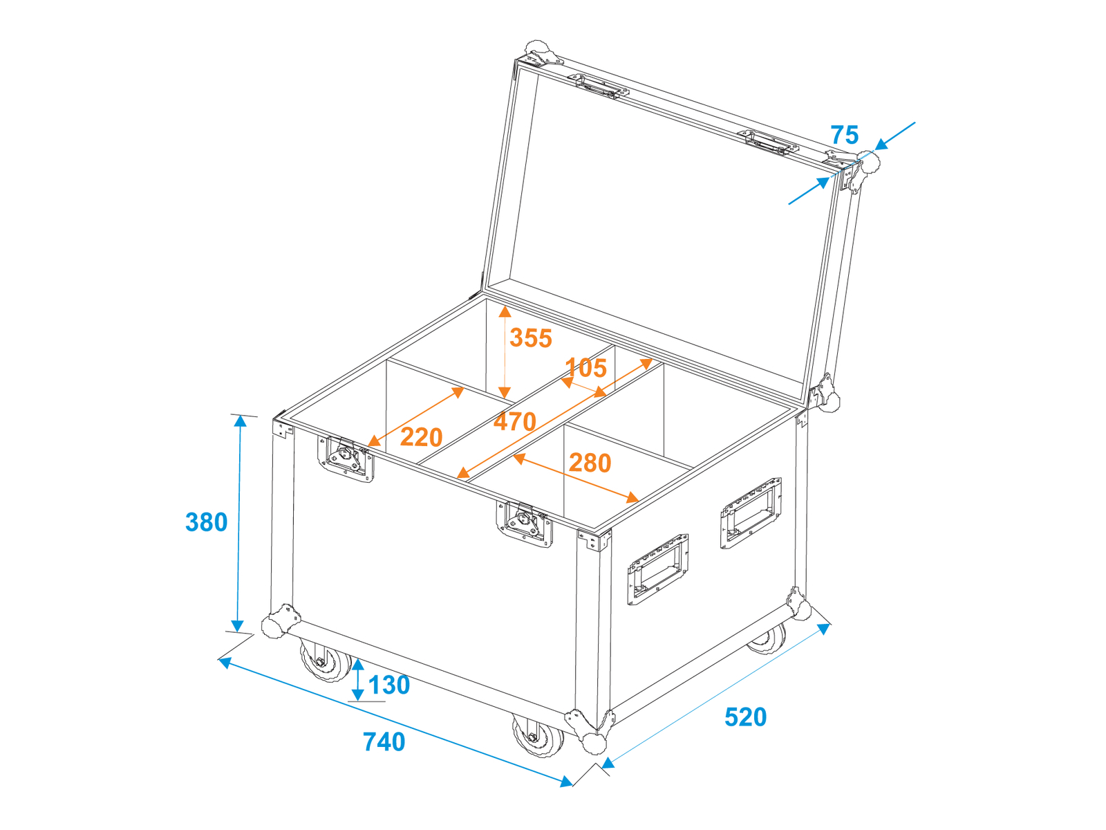 ROADINGER Flightcase 4x LED Theatre COB 200 Serie, mit Rollen