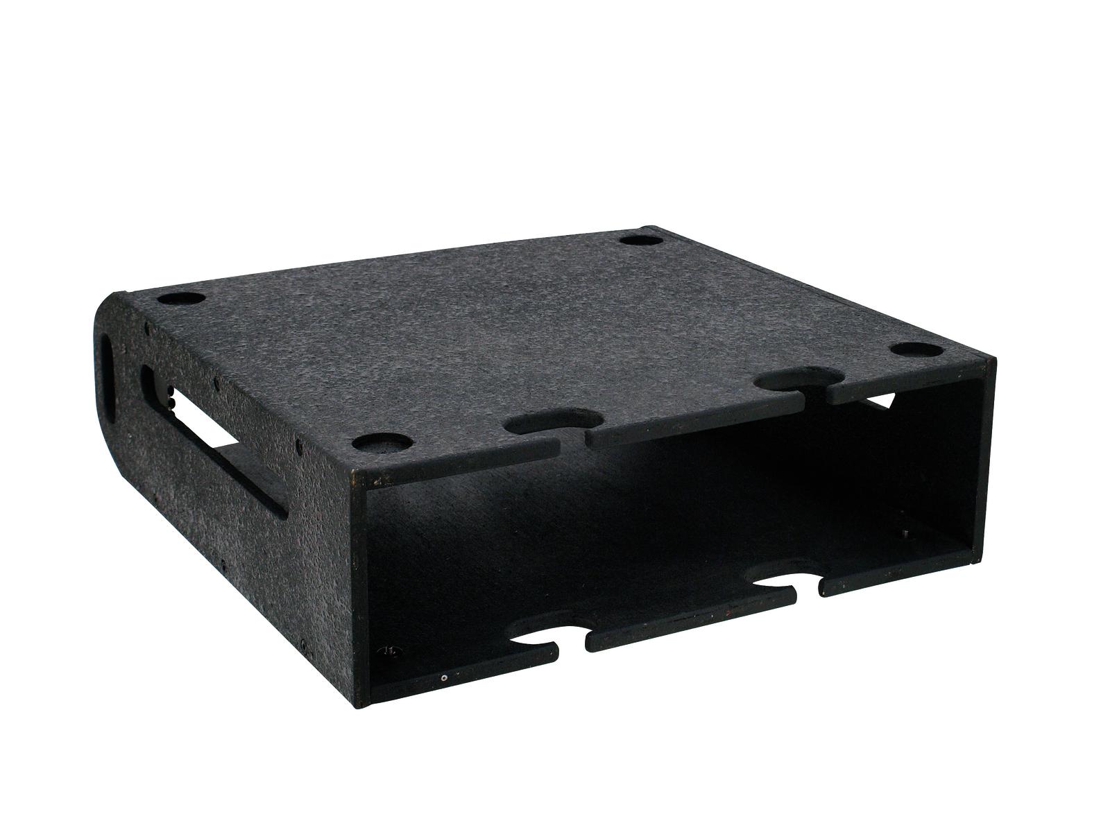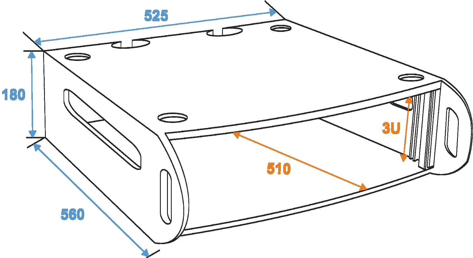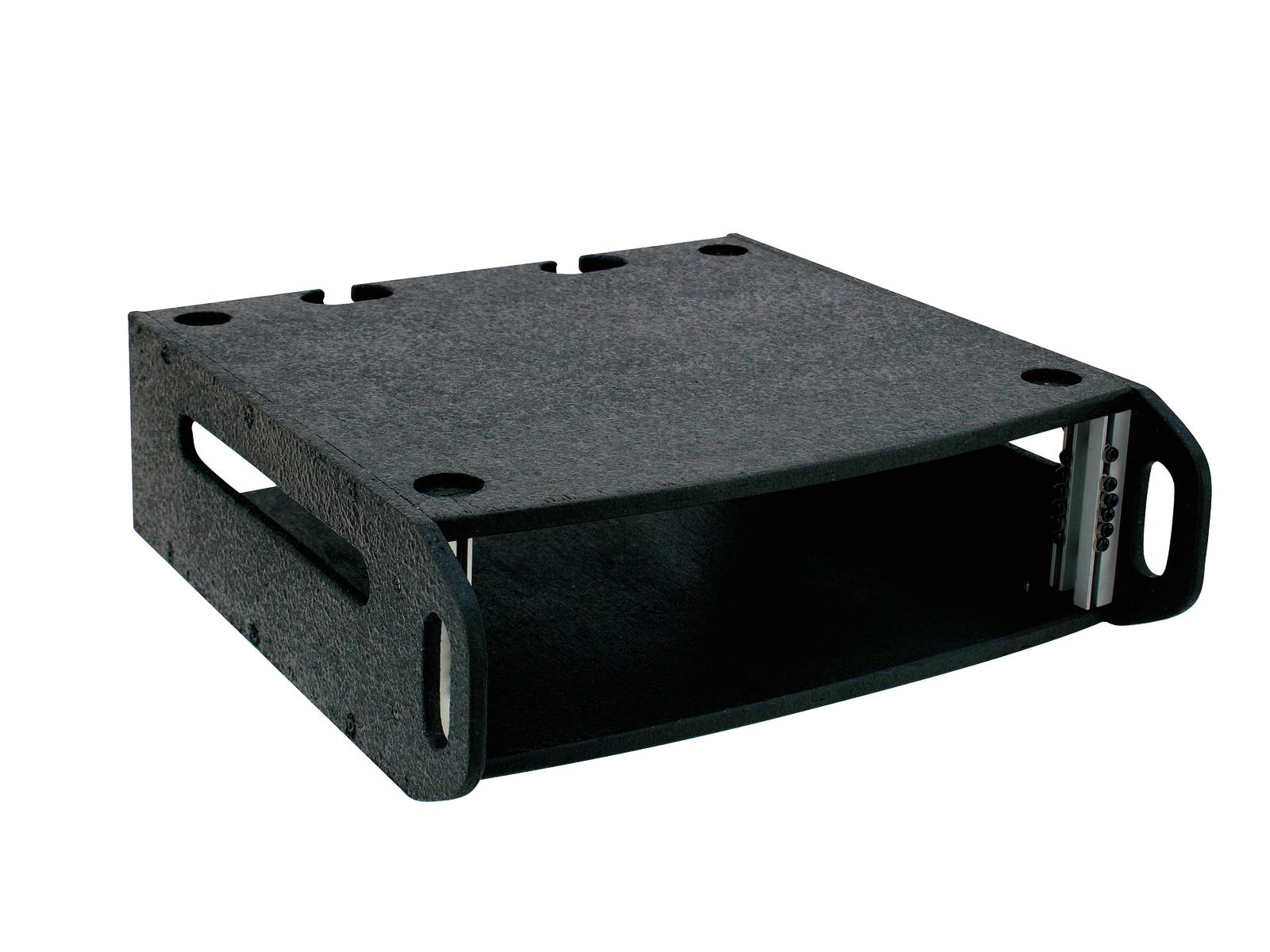- Rackschienen mit 3 HE Montagemöglichkeit z. B. für Endstufen, Lichtendstufen, Zuspielgeräte