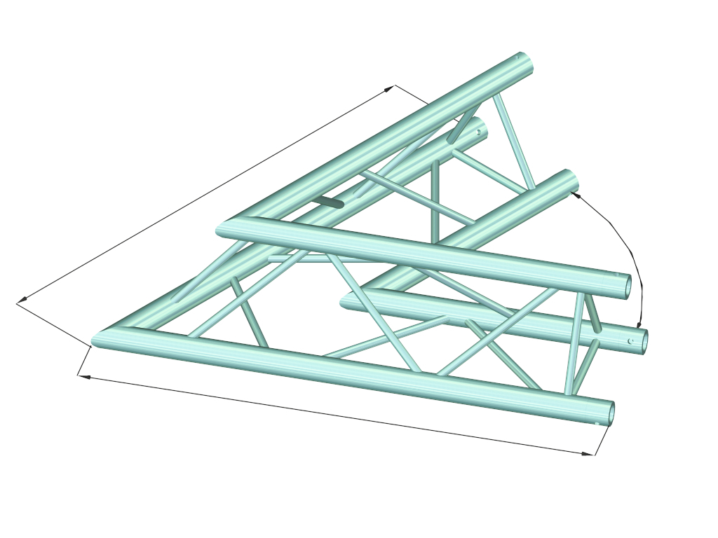 DECOLOCK DQ3 3-Punkt-TraversensystemBeim DECOLOCK DQ3 System handelt es sich um ein 3-Punkt Traversensystem aus Aluminium, das über drei konische Verbinder, Zapfen und Splinte verbunden wird.Der Vorteil konischer Verbinder liegt darin, dass sie kraft- und formschlüssig mit dem Gurtrohr abschließen und damit höchste Belastbarkeit garantieren. Das Quick-Lock System ermöglicht schnelle, effiziente und optisch ansprechende Montage bei häufigem Auf- und Abbau.Die drei Gurtrohre sind aus 35 mm Aluminiumrohr mit 2 mm Wandstärke gefertigt und bieten ausreichende Belastbarkeit bei niedrigem Eigengewicht. Die Streben haben einen Durchmesser von 10 mm bei 2 mm Wandstärke und geben dem System ein dekoratives Aussehen.Mit DECOLOCK lassen sich kompakte Installationen mit geringem Eigengewicht realisieren z. B. zur Verwendung in Schaufenstern, Geschäftsdekorationen, Ausstellungen, in der Innenarchitektur, auf Messeständen, im Ladenbau, Diskotheken- und Theatereinrichtungen.DECOLOCK ist primär für dekorative Installationen konzipiert, eignet sich aber aufgrund seines ästhetischen Erscheinungsbildes sowohl für temporäre wie auch permanente Strukturen. Pluspunkte dieses Systems sind seine kompakte Konstruktion mit 220 bzw. 195 mm Außenmaß, niedriges Gewicht, optimale Festigkeit sowie einfache und schnelle Montage.Die Dokumentation dieses Traversensystems lehnt sich eng an den vom VPLT veröffentlichten Standard SQ P1 - Traversen an. Die Lasttabelle als Berechnungsgrundlage kann vor dem Kauf im Internet heruntergeladen werden!Bitte beachten Sie: Dieses Traversensystem darf niemals mit anderen Systemen kombiniert werden!