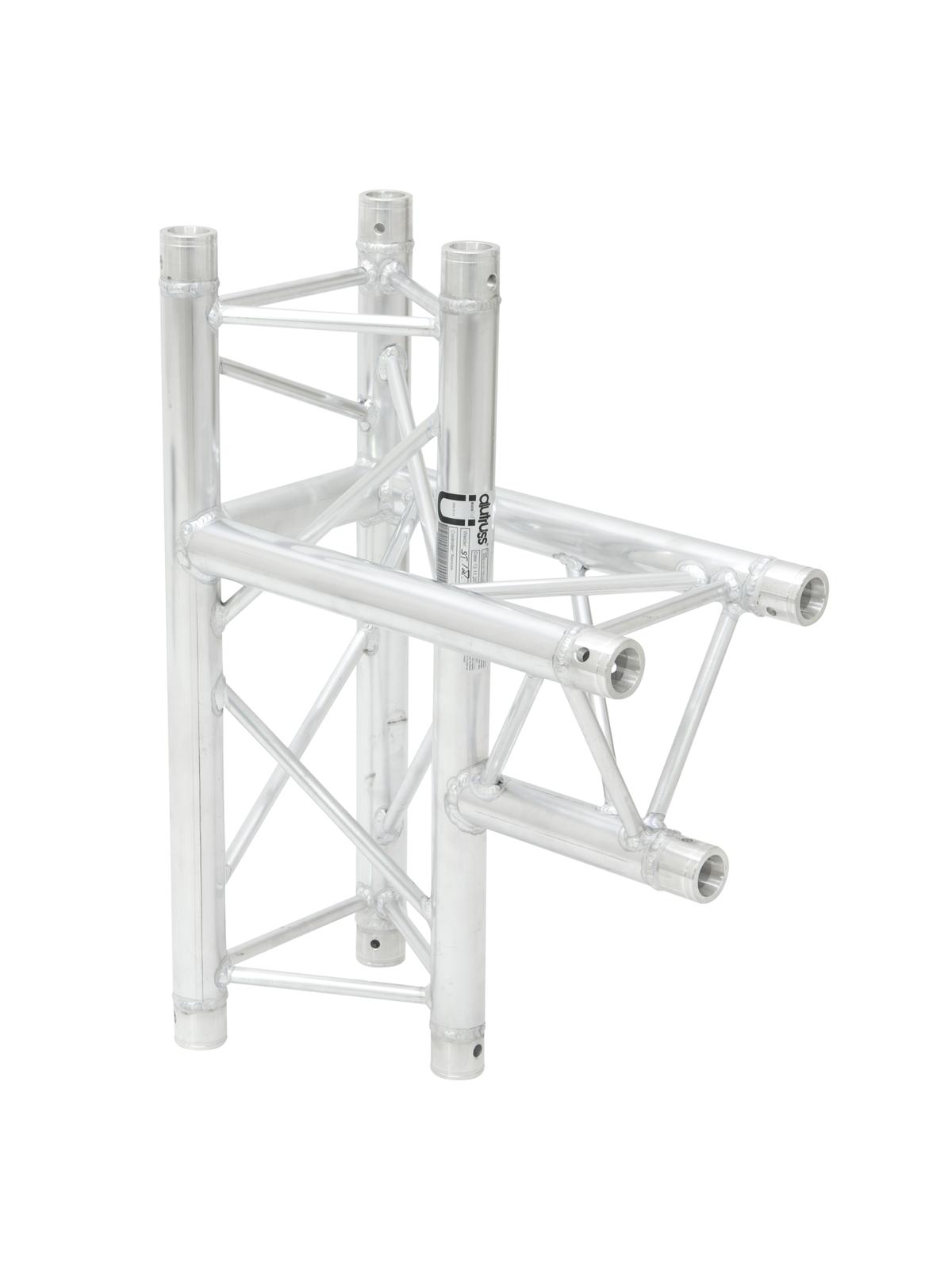 TRILOCK 6082 3-Punkt TraversensystemBeim TRILOCK 6082 handelt es sich um ein 3-Punkt Traversensystem aus Aluminium, das über drei konische Verbinder, Zapfen und Splinte verbunden wird. Beim TRILOCK 6082 wird die feste Legierung EN-AW 6082 T6 (AlMgSi1 T6) für hohe Belastbarkeit verwendet. Der Vorteil konischer Verbinder liegt darin, dass sie kraft- und formschlüssig mit dem Gurtrohr abschließen und damit höchste Belastbarkeit garantieren. Das Quick-Lock System ermöglicht schnelle, effiziente und optisch ansprechende Montage bei häufigem Auf- und Abbau. Die drei Gurtrohre sind aus 50 mm Aluminiumrohr mit 2 mm Wandstärke gefertigt und geben diesem System ein hervorragendes Gewichts-Belastbarkeitsverhältnis. Die Streben haben einen Durchmesser von 16 mm bei 2 mm Wandstärke und lassen viel Spiel zum Einhängen von Couplern, Haken und Schellen. Mit Außenmaßen von 290 mm bzw. 257 mm handelt es sich um ein stabiles Traversensystem für höhere Lasten und längere Haltbarkeit. Dieses Traversensystem ist in erster Linie für die intensive Nutzung im Bühnenbau, Messebau, in der Veranstaltungstechnik, aber auch für permanente Installationen bei Diskotheken- und Theatereinrichtungen konzipiert. Seine polierte Oberfläche macht dieses Universalsystem zu einem echten Hingucker. Durch sein umfangreiches Sortiment an Standard-Systemlängen, Ecken, Kreisen und Zubehör ist dieses System höchst vielseitig und bietet unendliche Gestaltungsmöglichkeiten. Die Produktion dieses Traversensystems wird vom TÜV überwacht. Die Lasttabelle als Berechnungsgrundlage kann vor dem Kauf im Internet heruntergeladen werden!Bitte beachten Sie: Dieses Traversensystem darf niemals mit anderen Systemen kombiniert werden!