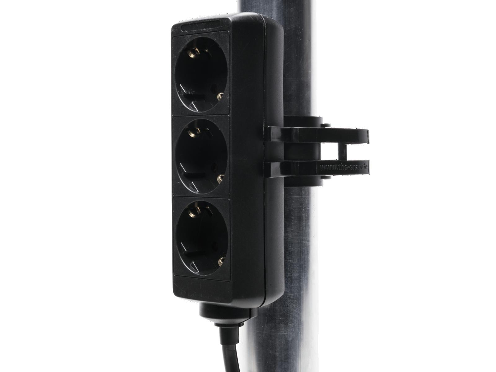 Mit Halterung zur zusätzlichen Befestigung handelsüblicher Steckdosenleisten
