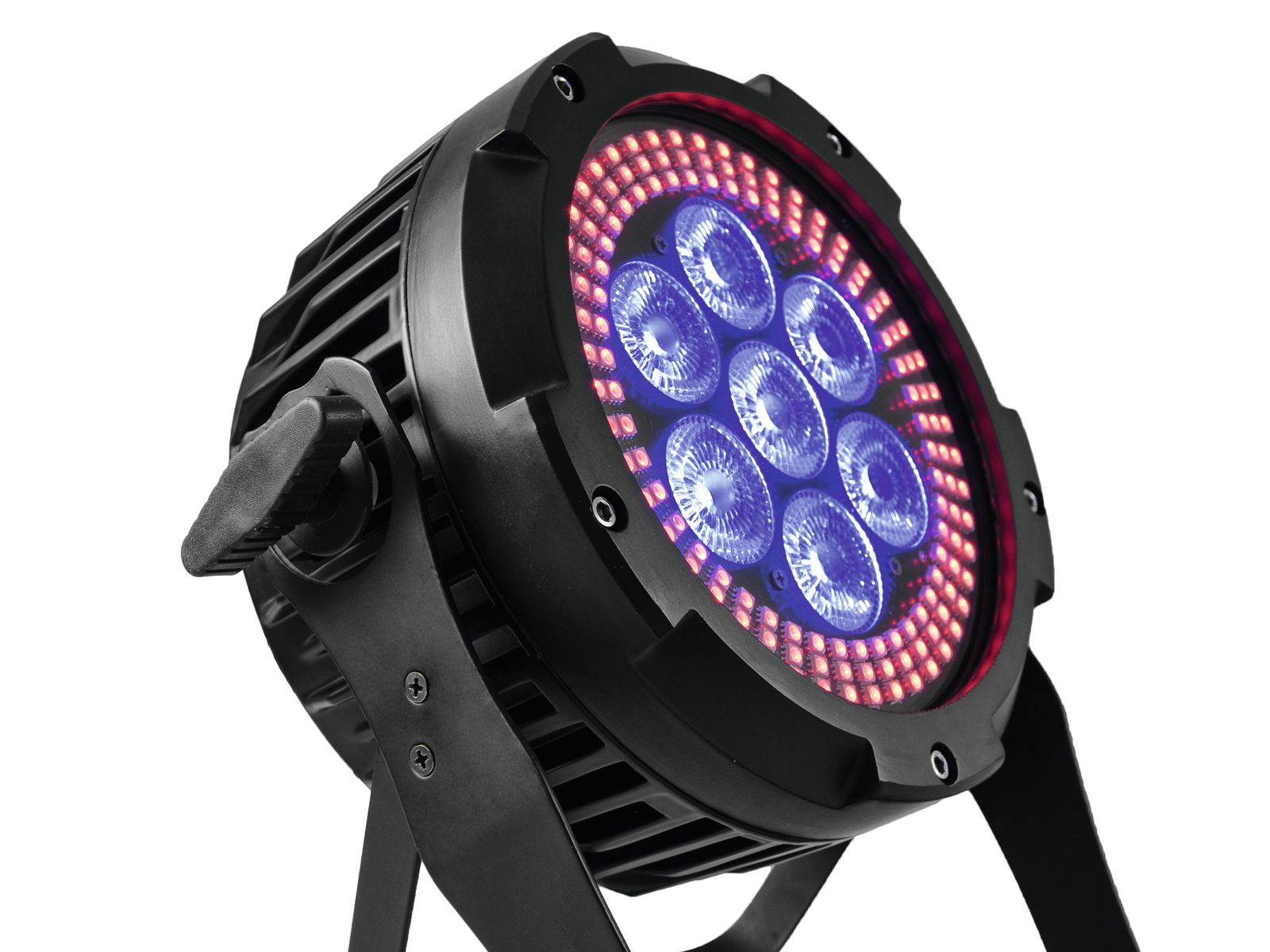 - Ausgestattet mit 7 leistungsstarken RGBAW+UV-LEDs (6in1) und 144 RGB-LEDs (SMD)