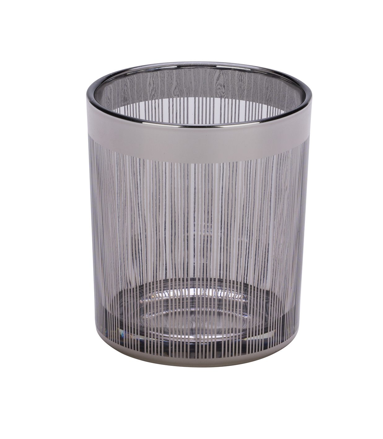 Glasteelicht, Streifen, silber, ∅ 8,8 cm / Höhe: 10 cm